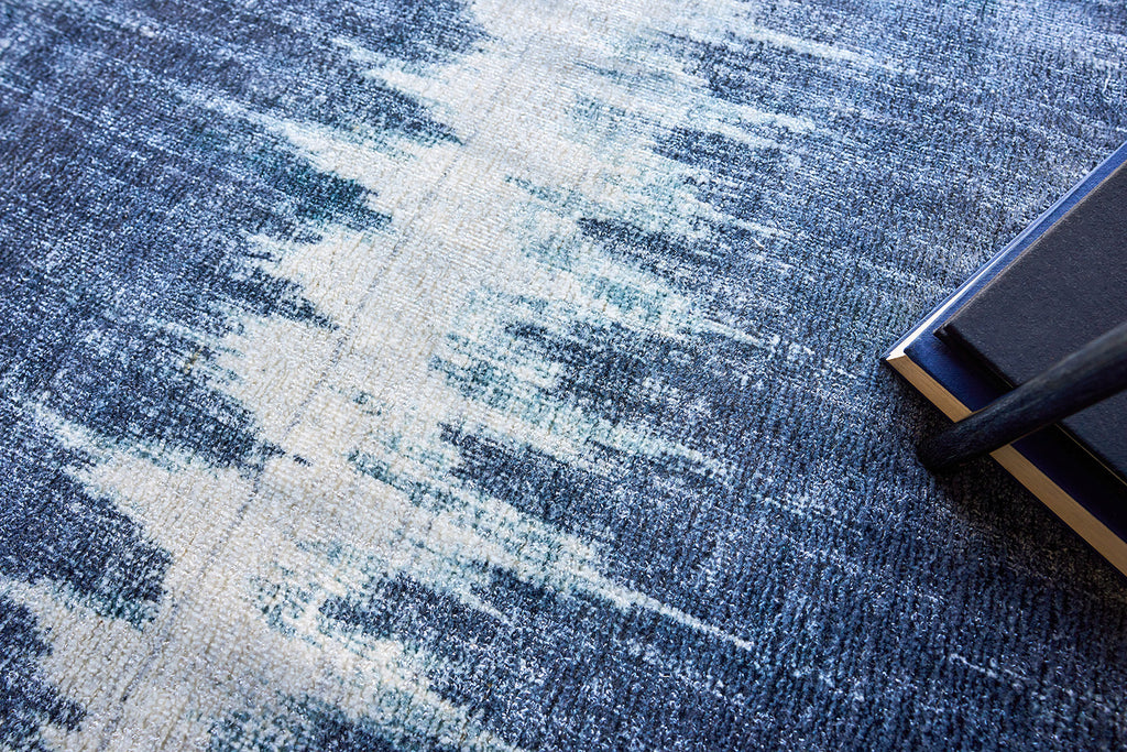 The stunning design of the Chroma rug recalls the beauty of a modern art piece. Hand made with soft, wool and bamboo silk, this rug makes a stunning addition to any interior with its incredible texture, chic geometric pattern, and modern color palette.