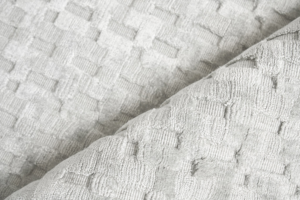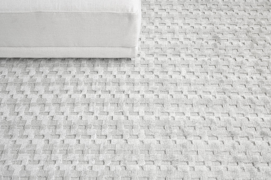 The versatility of a solid piece with a little more intrigue. A mix of high and low geometric shapes gives the Monroe rug its unique carved appearance. Beautifully hand made with a blend of bamboo silk and cotton, this rug is the perfect accent to any space.