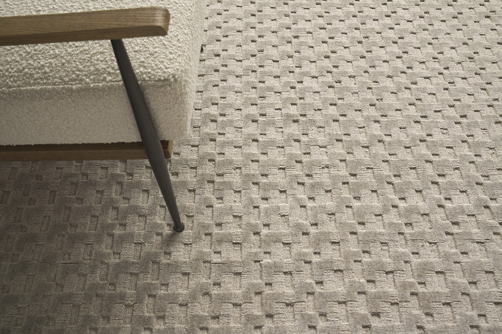 The versatility of a solid piece with a little more intrigue. A mix of high and low geometric shapes gives the Monroe rug its unique carved appearance. Beautifully hand made with a blend of bamboo silk and cotton, this rug is the perfect accent to any space.