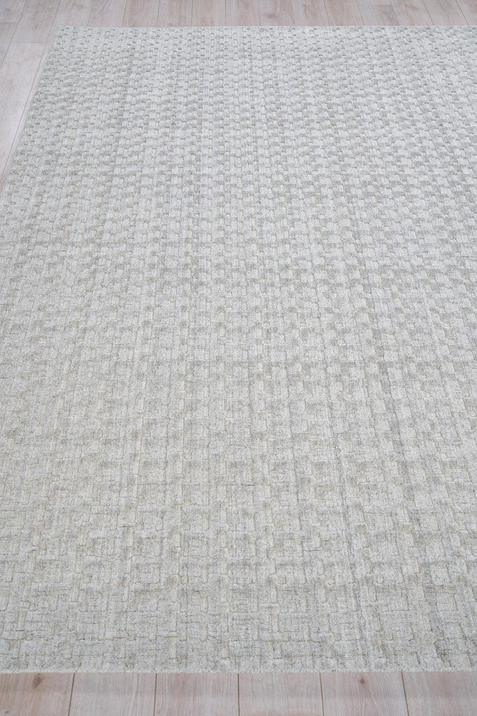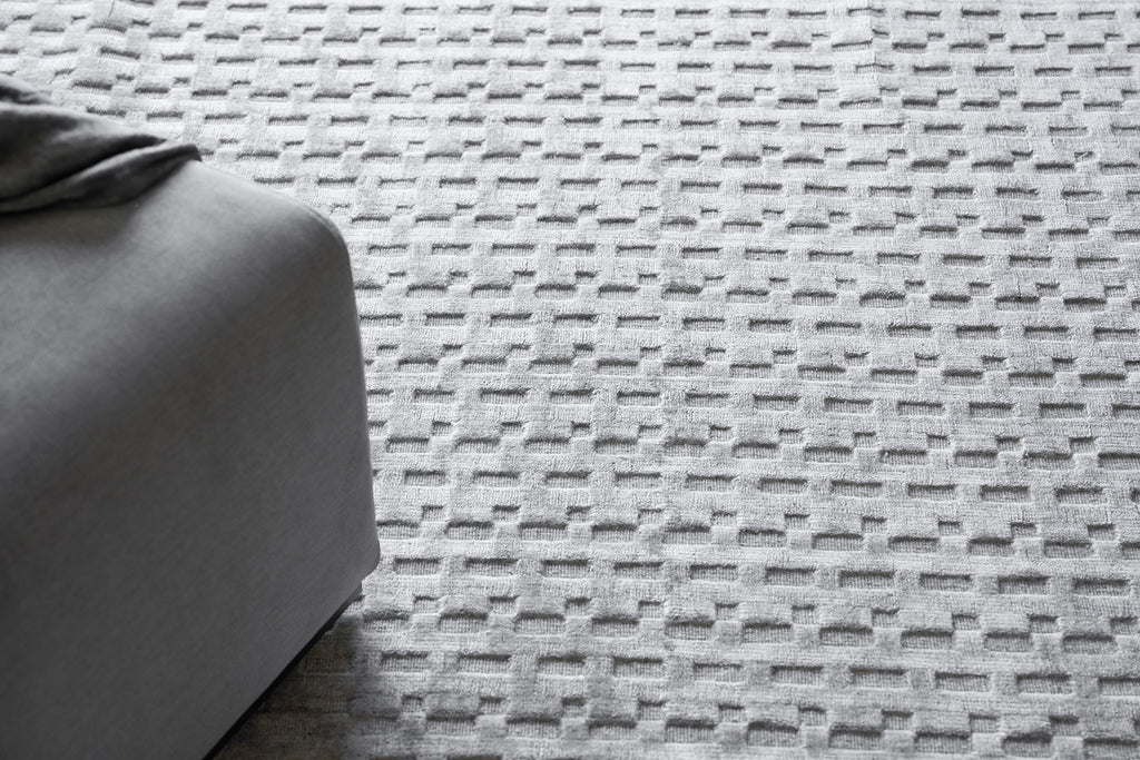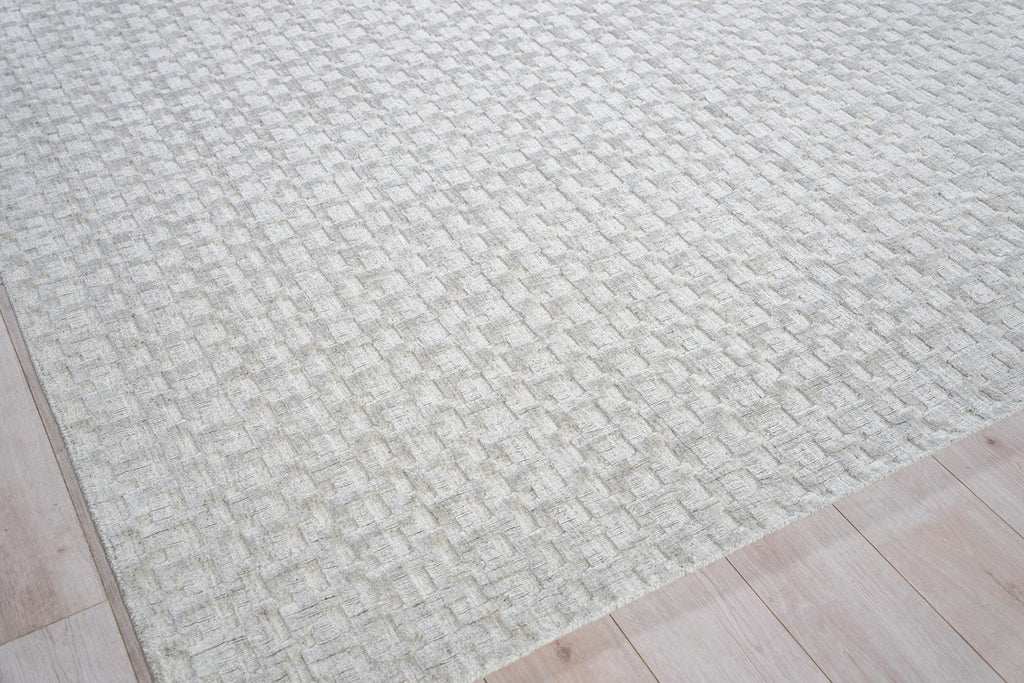 The versatility of a solid piece with a little more intrigue. A mix of high and low geometric shapes gives the Monroe rug its unique carved appearance. Beautifully hand made with a blend of bamboo silk and cotton, this rug is the perfect accent to any space.
