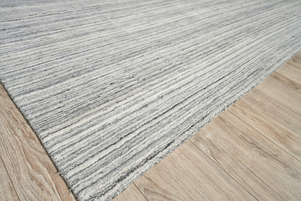 The Rossini rug was designed to ground any room with its lush softness, rich dimensional texture and striated design. Made in a combination of nylon and PET, in a textured loop and cut pile construction.
