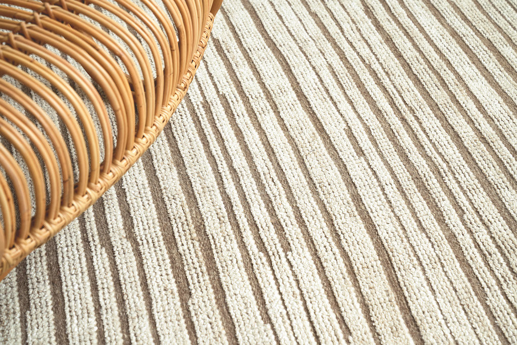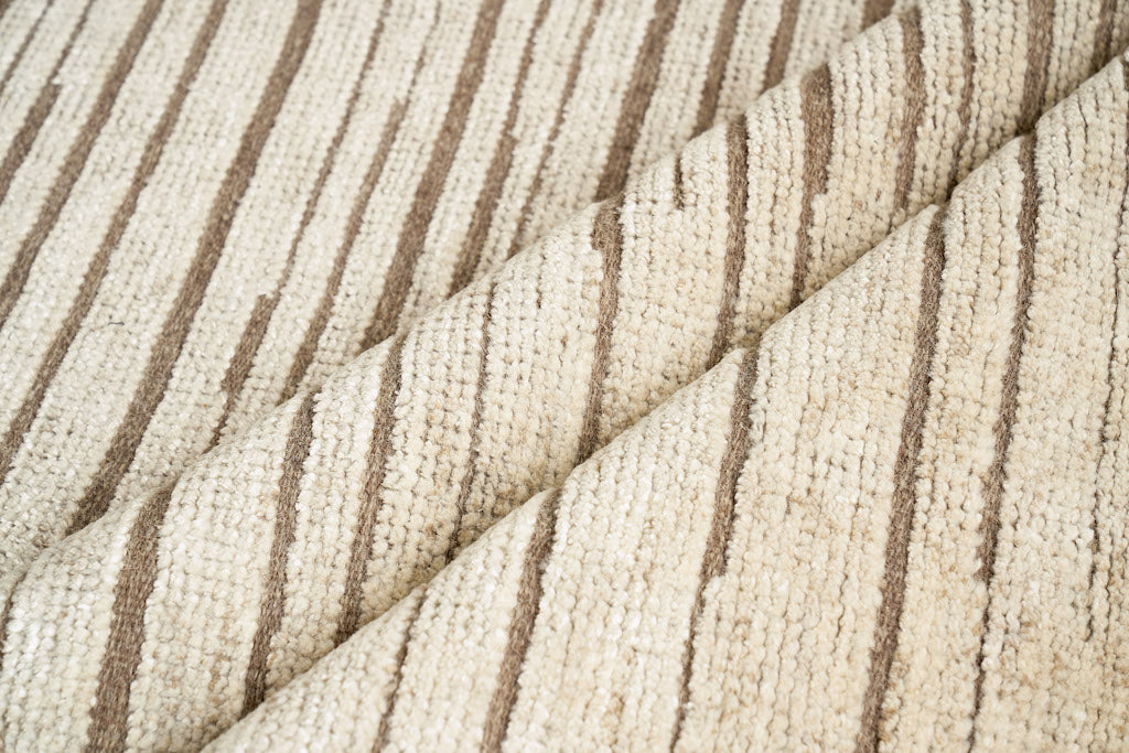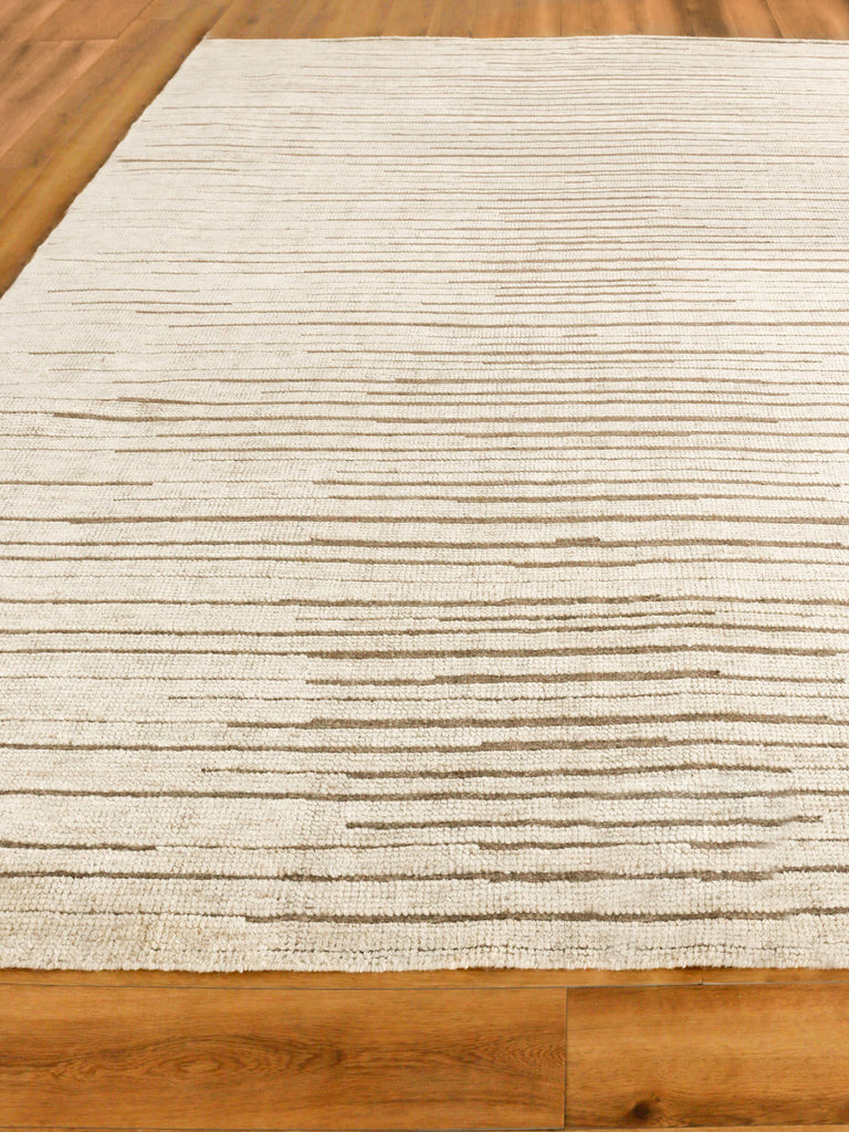 The Eaton Collection offers subtle graphic appeal with its striated mix of colors and incredible texture. Hand knotted with soft wool and bamboo silk, this rug will enrich any space.