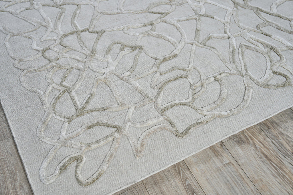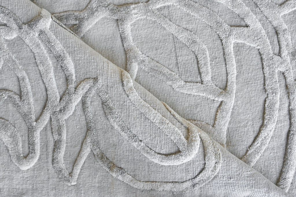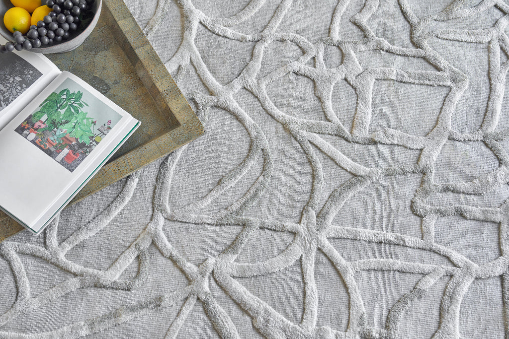 The Goudy rug reimagines contemporary design with its dramatic high low patterns and unique color palette. An allover bamboo silk pattern emerges from a wool flat weave foundation to create incredible visual depth and dimension. Bring intriguing texture and sophisticated pattern to any interior with this unique rug.