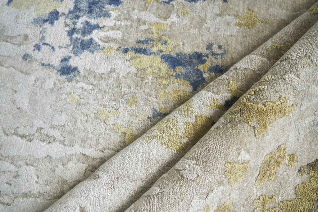 The luxurious Laureno rug stuns with soft bamboo silk hand knotted into an abstract work of art. With its painterly design and gorgeous coloration, this rug enlivens any room.