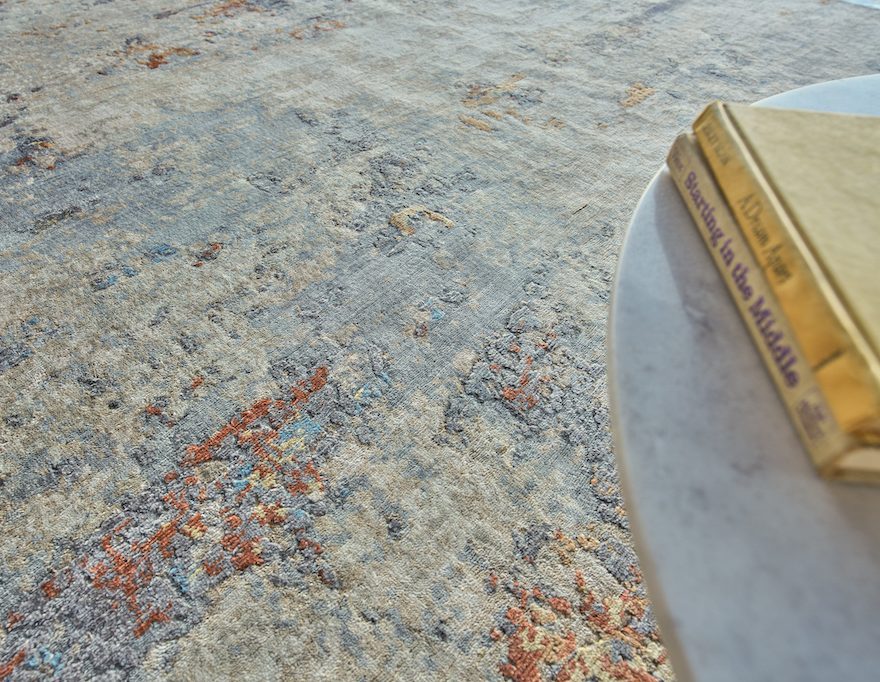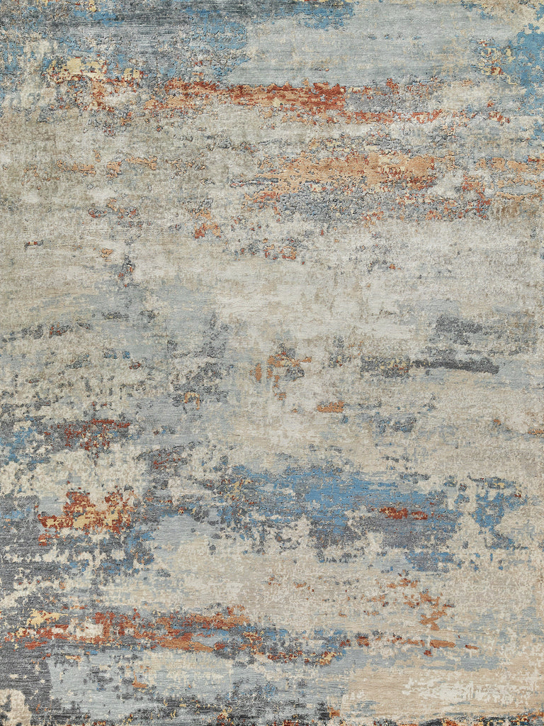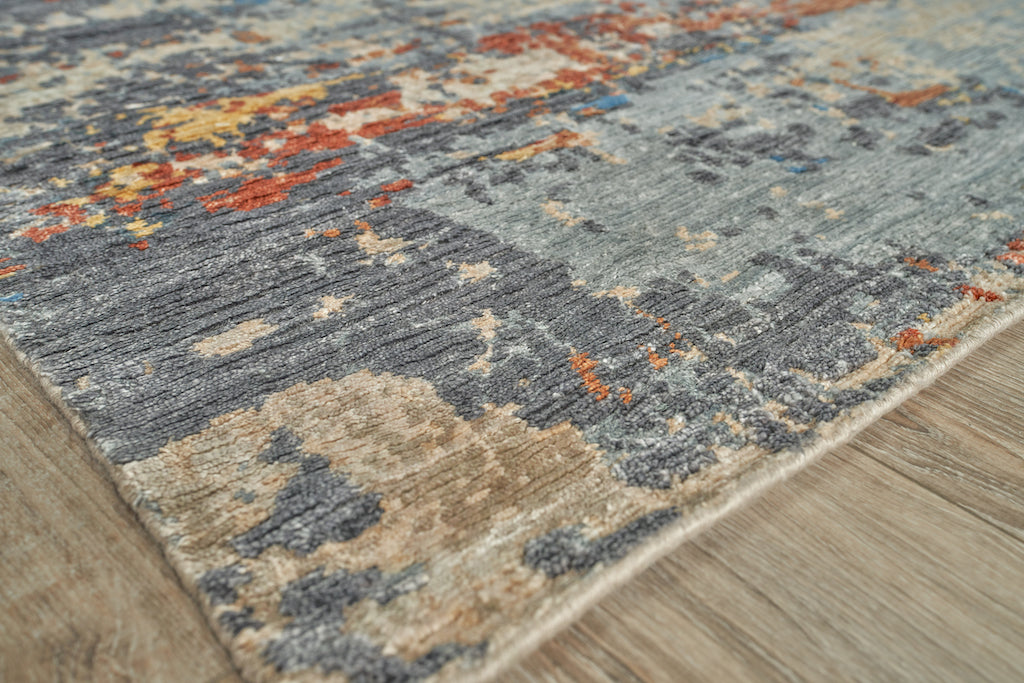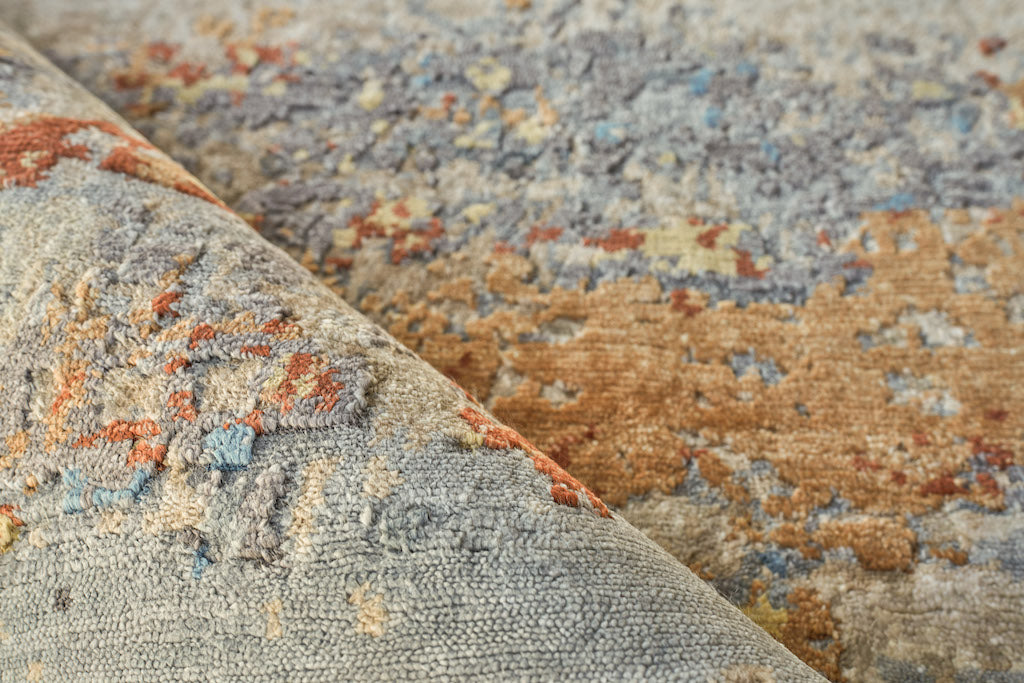 The luxurious Laureno rug stuns with soft bamboo silk hand knotted into an abstract work of art. With its painterly design and gorgeous coloration, this rug enlivens any room.