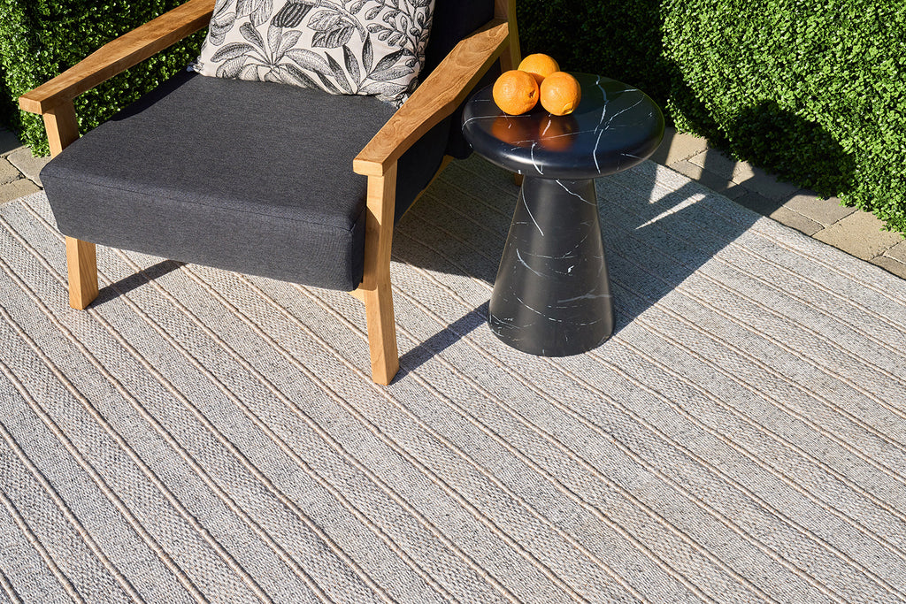 Handcrafted with performance fibers in versatile neutrals, the Nova Collection offers high style with its dynamic stripe motif. The perfect luxurious performance foundation indoors or out.