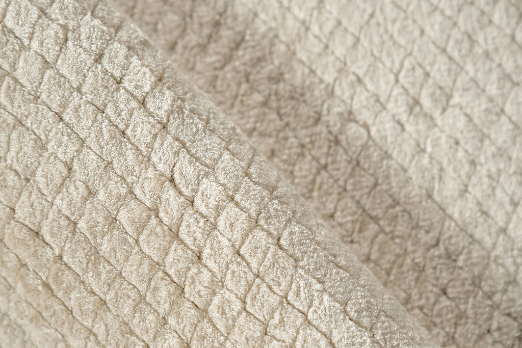 Luxurious and chic, the Pearl rug offers visual intrigue with its textured grid pattern. Hand made with silky viscose, the neutral tone and geometric design make it a versatile choice to elevate a space.
