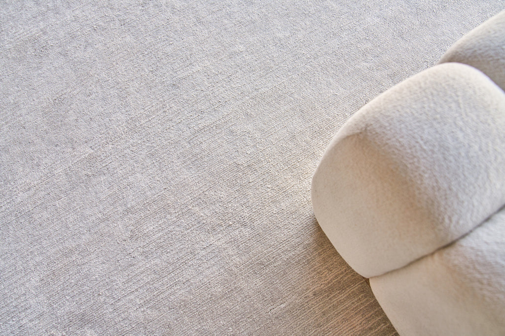 The Tangaro rug features a soft, plush pile in a random multi directional line pattern. Each versatile rug is handmade with an ultra fine blend of bamboo and banana silk fiber using today’s contemporary soft neutral colors. An elegant and eye appealing option for any room.